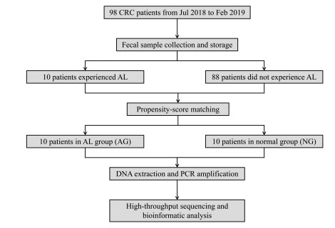 [1] Sung H, Ferlay J, Siegel R L, et al. Global Cancer Statistics 2020: GLOBOCAN estimates of incidence and mortality worldwide for 36 cancers in 185 countries. CA Cancer J Clin, 2021; 71(3): 209-249. doi: 10.3322/caac.21660 [2] Zheng R, Zhang S, Zeng H, et al. Cancer incidence and mortality in China, 2016. J Nat Cancer Cent, 2022; 2(1): 1-9. doi: 10.1016/j.jncc.2022.02.002 [3] Bertelsen C A, Andreasen A H, Jørgensen T, et al. Anastomotic leakage after anterior resection for rectal cancer: risk factors. Colorectal Dis, 2010; 12(1): 37-43. doi: 10.1111/j.1463-1318.2008.01711.x [4] Law W L, Choi H K, Lee YM, et al. Anastomotic leakage is associated with poor long-term outcome in patients after curative colorectal resection for malignancy. J Gastrointest Surg, 2007; 11(1): 8-15. doi: 10.1007/s11605-006-0049-z [5] Gaines S, Shao C, Hyman N, et al. Gut microbiome influences on anastomotic leak and recurrence rates following colorectal cancer surgery. Br J Surg, 2018; 105(2): e131-e141. doi: 10.1002/bjs.10760 [6] Sciuto A, Merola G, De Palma G D, et al. Predictive factors for anastomotic leakage after laparoscopic colorectal surgery. World J Gastroenterol, 2018; 24(21): 2247-2260. doi: 10.3748/wjg.v24.i21.2247 [7] Nikolian V C, Kamdar N S, Regenbogen S E, et al. Anastomotic leak after colorectal resection: a population-based study of risk factors and hospital variation. Surgery, 2017; 161(6): 1619-1627. doi: 10.1016/j.surg.2016.12.033 [8] Parthasarathy M, Greensmith M, Bowers D, et al. Risk factors for anastomotic leakage after colorectal resection: a retrospective analysis of 17518 patients. Colorectal Dis, 2017; 19(3): 288-298. doi: 10.1111/codi.13476 [9] Shakhsheer B A, Versten L A, Luo J N, et al. Morphine promotes colonization of anastomotic tissues with collagenase - producing enterococcus faecalis and causes leak. J Gastrointest Surg, 2016; 20(10): 1744-1751. doi: 10.1007/s11605-016-3237-5 [10] van Praagh J B, de Goffau M C, Bakker I S, et al. Intestinal microbiota and anastomotic leakage of stapled colorectal anastomoses: a pilot study. Surg Endosc, 2016; 30(6): 2259-2265. doi: 10.1007/s00464-015-4508-z [11] Zhang Y K, Zhang Q, Wang Y L, et al. A comparison study of age and colorectal cancer-related gut bacteria. Front Cell Infect Microbiol, 2021; 11: 606490. doi: 10.3389/fcimb.2021.606490 [12] Xiong H, Wang J, Chang Z, et al. Gut microbiota display alternative profiles in patients with early-onset colorectal cancer. Front Cell Infect Microbiol, 2022; 12: 1036946. doi: 10.3389/fcimb.2022.1036946 [13] Chiarello MM, Fransvea P, Cariati M, et al. Anastomotic leakage in colorectal cancer surgery. Surg Oncol, 2022; 40: 101708. doi: 10.1016/j.suronc.2022.101708 [14] Gessler B, Eriksson O, Angenete E. Diagnosis, treatment, and consequences of anastomotic leakage in colorectal surgery. Int J Colorectal Dis, 2017; 32(4): 549-556. doi: 10.1007/s00384-016-2744-x [15] Young J, Badgery-Parker T, Dobbins T, et al. Comparison of ECOG/ WHO performance status and ASA score as a measure of functional status. J Pain Symptom Manage, 2015; 49(2): 258-264. doi: 10.1016/j.jpainsymman.2014.06.006 [16] Qi Z, Zhibo Z, Jing Z, et al. Prediction model of poorly differentiated colorectal cancer (CRC) based on gut bacteria. BMC Microbiol, 2022; 22(1): 312. doi: 10.1186/s12866-022-02712-w [17] Sarhadi V, Lahti L, Saberi F, et al. Gut microbiota and host gene mutations in colorectal cancer patients and controls of iranian and finnish origin. Anticancer Res, 2020; 40(3): 1325-1334. doi: 10.21873/anticanres.14074 [18] Alverdy J C, Schardey H M. Anastomotic leak: toward an understanding of its root causes. J Gastrointest Surg, 2021; 25(11): 2966-2975. doi: 10.1007/s11605-021-05048-4 [19] Hajjar R, Gonzalez E, Fragoso G, et al. Gut microbiota influence anastomotic healing in colorectal cancer surgery through modulation of mucosal proinflammatory cytokines. Gut, 2023; 72(6): 1143-1154. doi: 10.1136/gutjnl-2022-328389 -