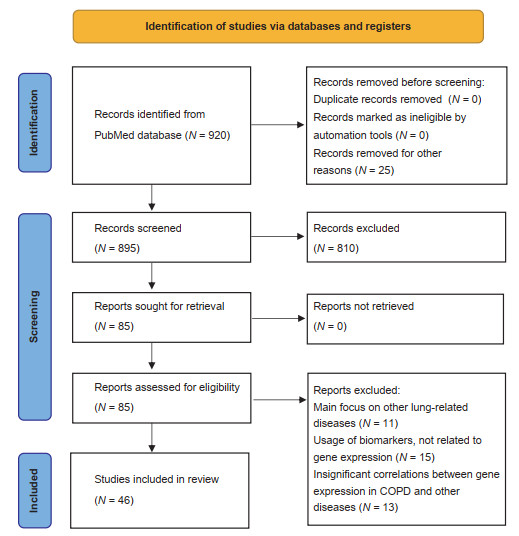 [1] World Health Organization. The top 10 causes of death. 2020. Available at: https://www.who.int/news-room/fact-sheets/detail/the-top-10-causes-of-death. Accessed on 03 March, 2022. [2] Adeloye D, Song P, Zhu Y, et al. Global, regional, and national prevalence of, and risk factors for, Chronic obstructive pulmonary disease (COPD) in 2019: a systematic review and modelling analysis. Lancet Respir Med, 2022; 10(5): 447-458. doi: 10.1016/S2213-2600(21)00511-7 [3] Szalontai K, Gémes N, Furák J, et al. Chronic obstructive pulmonary disease: epidemiology, biomarkers, and paving the way to lung cancer. J Clin Med, 2021; 10(13): 2889. doi: 10.3390/jcm10132889 [4] Quan Z, Yan G, Wang Z, et al. Current status and preventive strategies of chronic obstructive pulmonary disease in China: a literature review. J Thorac Dis, 2021; 13(6): 3865-3877. doi: 10.21037/jtd-20-2051 [5] Cook S, Eggen A E, Hopstock L A, et al. Chronic obstructive pulmonary disease (COPD) in population studies in Russia and Norway: comparison of prevalence, awareness and management. Int J Chron Obstruct Pulmon Dis, 2021; 16: 1353-1368. doi: 10.2147/COPD.S292472 [6] Fettes L, Bone A E, Etkind S N, et al. Disability in basic activities of daily living is associated with symptom burden in older people with advanced cancer or chronic obstructive pulmonary disease: a secondary data analysis. J Pain Symptom Manage, 2021; 61(6): 1205-1214. doi: 10.1016/j.jpainsymman.2020.10.012 [7] Gupta N, Malhotra N, Ish P. GOLD 2021 guidelines for COPD - what's new and why. Adv Respir Med, 2021; 89(3): 344-346. doi: 10.5603/ARM.a2021.0015 [8] Taub F E, DeLeo J M, Thompson E B. Sequential comparative hybridizations analyzed by computerized image processing can identify and quantitate regulated RNAs. DNA, 1983; 2(4): 309-327. doi: 10.1089/dna.1983.2.309 [9] Moher D, Shamseer L, Clarke M, et al. PRISMA-P Group. Preferred reporting items for systematic review and meta-analysis protocols (PRISMA-P) 2015 statement. Syst Rev, 2015; 4(1): 1. doi: 10.1186/2046-4053-4-1 [10] Centre for Reviews and Dissemination (UK). Database of abstracts of reviews of effects (DARE): quality-assessed reviews. York (UK): Univeristy of York, 1995. [11] Van Gelder R N, Von Zastrow M E, Yool A, et al. Amplified RNA synthesized from limited quantities of heterogeneous cDNA. Proc Natl Acad Sci U S A, 1990; 87(5): 1663-1667. doi: 10.1073/pnas.87.5.1663 [12] Brazma A, Hingamp P, Quackenbush J, et al. Minimum information about a microarray experiment(MIAME) - toward standards for microarray data. Nat Genet, 2001; 29(4): 365-371. doi: 10.1038/ng1201-365 [13] Naidu C N Suneetha Y. Current knowledge on microarray technology-an overview. Trop J Pharm Res, 2012; 11(1): 153-164. [14] Chang Y, Glass K, Liu Y Y, et al. COPD subtypes identified by network-based clustering of blood gene expression. Genomics, 2016; 107(2-3): 51-58. doi: 10.1016/j.ygeno.2016.01.004 [15] Vestbo J, Anderson W, Coxson H O, et al. Evaluation of COPD longitudinally to identify predictive surrogate end-points (ECLIPSE). Eur Respir J, 2008; 31(4): 869-873. doi: 10.1183/09031936.00111707 [16] Baines K J, Negewo N A, Gibson P G, et al. A Sputum 6 gene expression signature predicts inflammatory phenotypes and future exacerbations of COPD. Int J Chron Obstruct Pulmon Dis, 2020; 15: 1577-1590. doi: 10.2147/COPD.S245519 [17] Bhattacharya S, Tyagi S, Srisuma S, et al. Peripheral blood gene expression profiles in COPD subjects. J Clin Bioinforma, 2011; 1(1): 12. doi: 10.1186/2043-9113-1-12 [18] Bahr T M, Hughes G J, Armstrong M, et al. Peripheral blood mononuclear cell gene expression in chronic obstructive pulmonary disease. Am J Respir Cell Mol Biol, 2013; 49(2): 316-323. doi: 10.1165/rcmb.2012-0230OC [19] Wei L, Xu D, Qian Y, et al Comprehensive analysis of gene-expression profile in chronic obstructive pulmonary disease. Int J Chron Obstruct Pulmon Dis, 2015; 10: 1103-1109. [20] Boudewijn I M, Faiz A, Steiling K, et al. Nasal gene expression differentiates COPD from controls and overlaps bronchial gene expression. Respir Res, 2017; 18(1): 213. doi: 10.1186/s12931-017-0696-5 [21] Yao Y, Gu Y, Yang M, et al. The Gene expression biomarkers for chronic obstructive pulmonary disease and interstitial lung disease. Front Genet, 2019; 10: 1154. doi: 10.3389/fgene.2019.01154 [22] Rogers L R K, Verlinde M, Mias G I. Gene expression microarray public dataset reanalysis in chronic obstructive pulmonary disease. PLoS One, 2019; 14(11): e0224750. doi: 10.1371/journal.pone.0224750 [23] Huang X, Li Y, Guo X, et al. Identification of differentially expressed genes and signaling pathways in chronic obstructive pulmonary disease via bioinformatic analysis. FEBS Open Bio, 2019; 9(11): 1880-1899. doi: 10.1002/2211-5463.12719 [24] Yu H, Guo W, Liu Y, et al. Immune characteristics analysis and transcriptional regulation prediction based on gene signatures of Chronic obstructive pulmonary disease. Int J Chron Obstruct Pulmon Dis, 2021; 16: 3027-3039. doi: 10.2147/COPD.S325328 [25] Winter N A, Gibson P G, McDonald V M, et al. Sputum gene expression reveals dysregulation of mast cells and basophils in eosinophilic COPD. Int J Chron Obstruct Pulmon Dis, 2021; 16: 2165-2179. doi: 10.2147/COPD.S305380 [26] Savarimuthu Francis S M, Larsen J E, Pavey S J, et al. Genes and gene ontologies common to airflow obstruction and emphysema in the lungs of patients with COPD. PLoS One, 2011; 6(3): e17442. doi: 10.1371/journal.pone.0017442 [27] Ning W, Li C J, Kaminski N, et al. Comprehensive gene expression profiles reveal pathways related to the pathogenesis of chronic obstructive pulmonary disease. Proc Natl Acad Sci U S A, 2004; 101(41): 14895-14900. doi: 10.1073/pnas.0401168101 [28] Wang I M, Stepaniants S, Boie Y, , et al. Gene expression profiling in patients with chronic obstructive pulmonary disease and lung cancer. Am J Respir Crit Care Med, 2008; 177(4): 402-411. doi: 10.1164/rccm.200703-390OC [29] Bhattacharya S, Srisuma S, Demeo D L, et al. Molecula